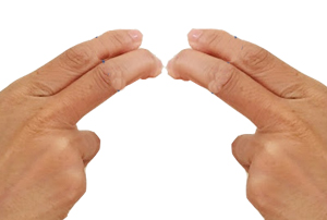くぼんでいるところまできたら両手の人差し指と中指でそのくぼみを広げるイメージでプッシュする。下の画像のような指で